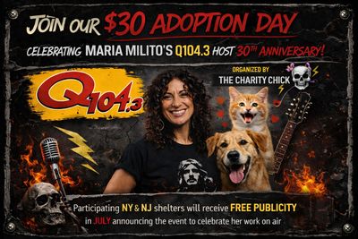 We’re inviting NY & NJ rescues and shelters to be part of a free radio promotion this July celebrating Maria Livito’s 30 years on Q104.3 — shining a spotlight on the animals who need it most.